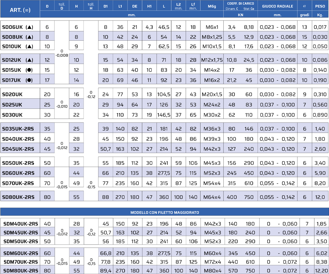 ISO 12240-4, SERIE E, TIPO M ESENTI DA MANUTENZIONE ACCOPPIAMENTO: CROMO DURO SU PTFE TERMINALE IN ACCIAIO C45 ZINCATO