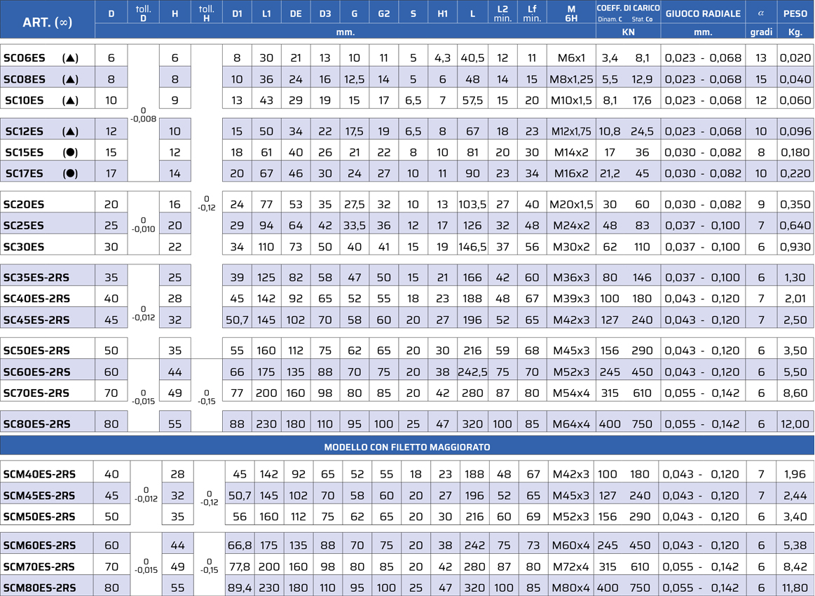 ISO 12240-4, SERIE E, SENZA FILETTATURA RICHIEDENTI MANUTENZIONE ACCOPPIAMENTO: ACCIAIO SU ACCIAIO TERMINALE IN ACCIAIO C45