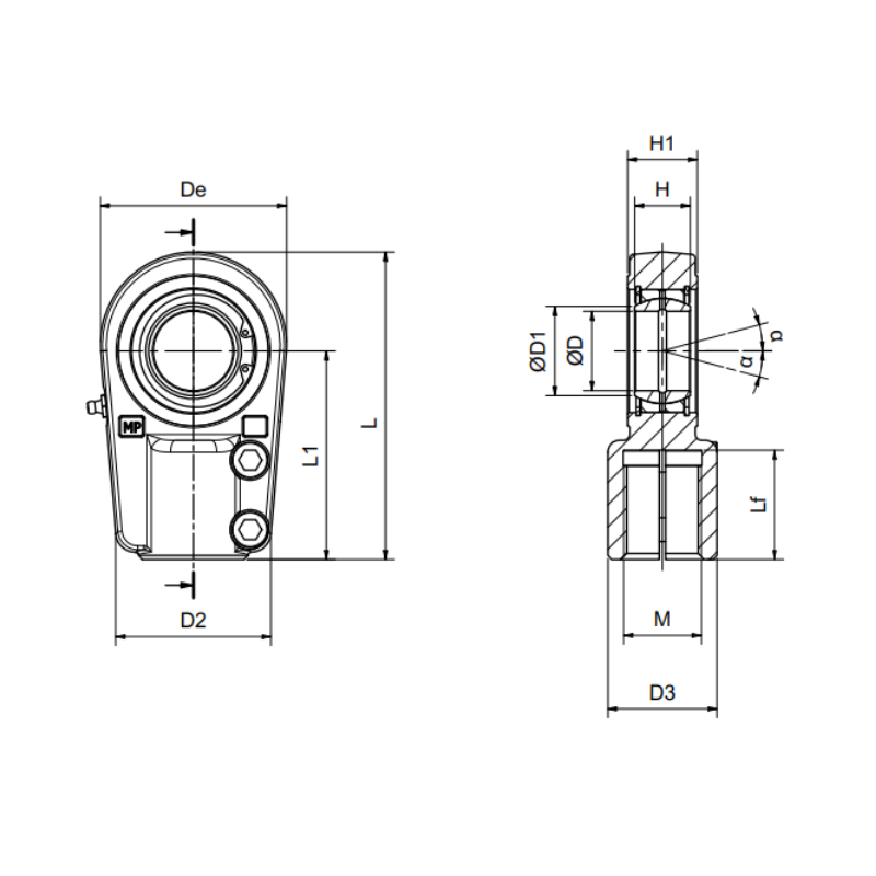 WITH GREASE NIPPLE COUPLING: STEEL / STEEL ROD END C45